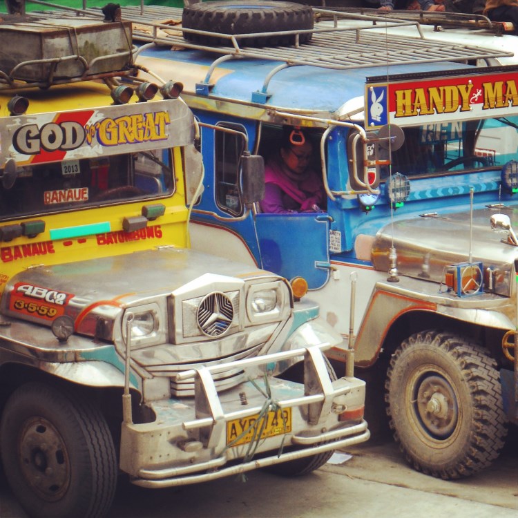 de transporte públicos castiços, como o jeepney, um jipe do tempo da 2a Guerra ressuscitado